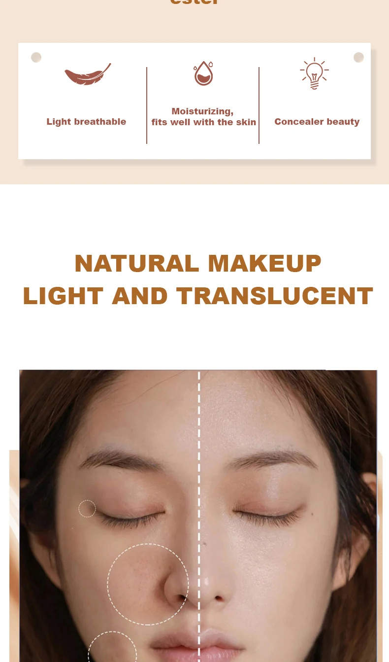 O BB Creme Almofada de Ar Ocheal é a combinação perfeita de maquiagem e cuidado com a pele. Sua fórmula leve e inovadora oferece cobertura uniforme, ajudando a disfarçar imperfeições, manchas, olheiras e poros, deixando a pele com aspecto natural e radiante.